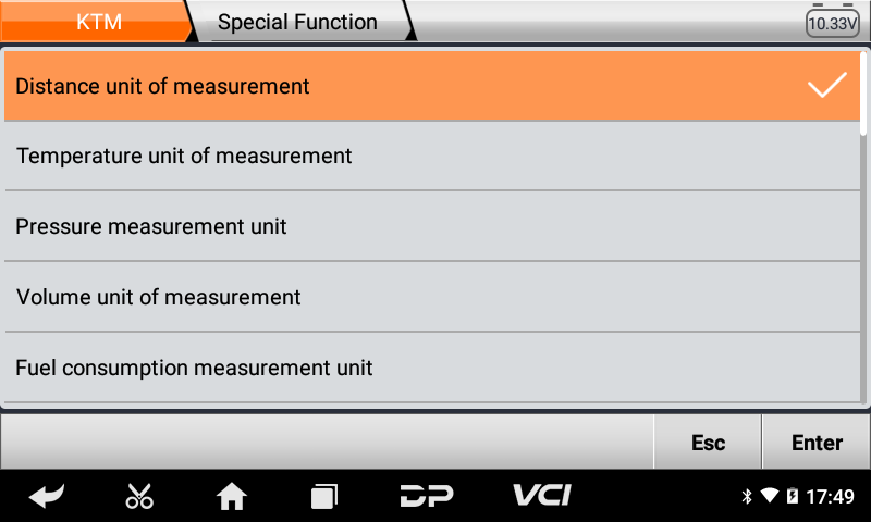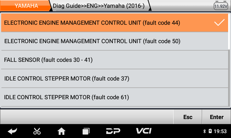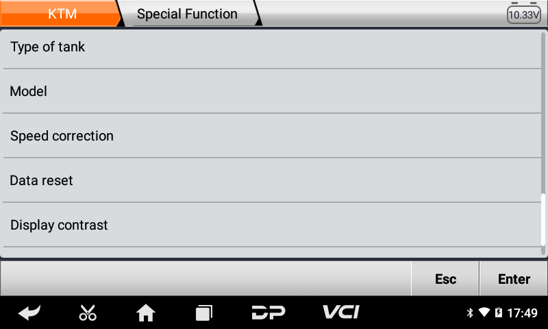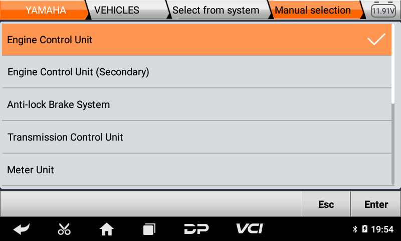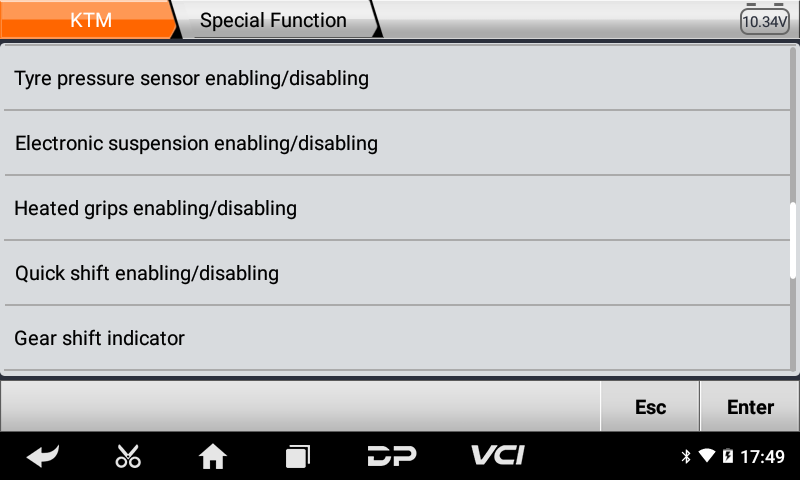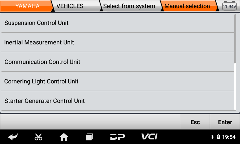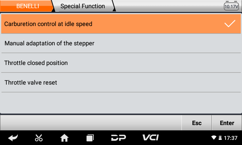 •Μενού η αυθαίρετη επιλογή είναι πιο βολική και γρήγορη στο Γενικό Διαγνωστικό Μοτοσυκλετών MS50