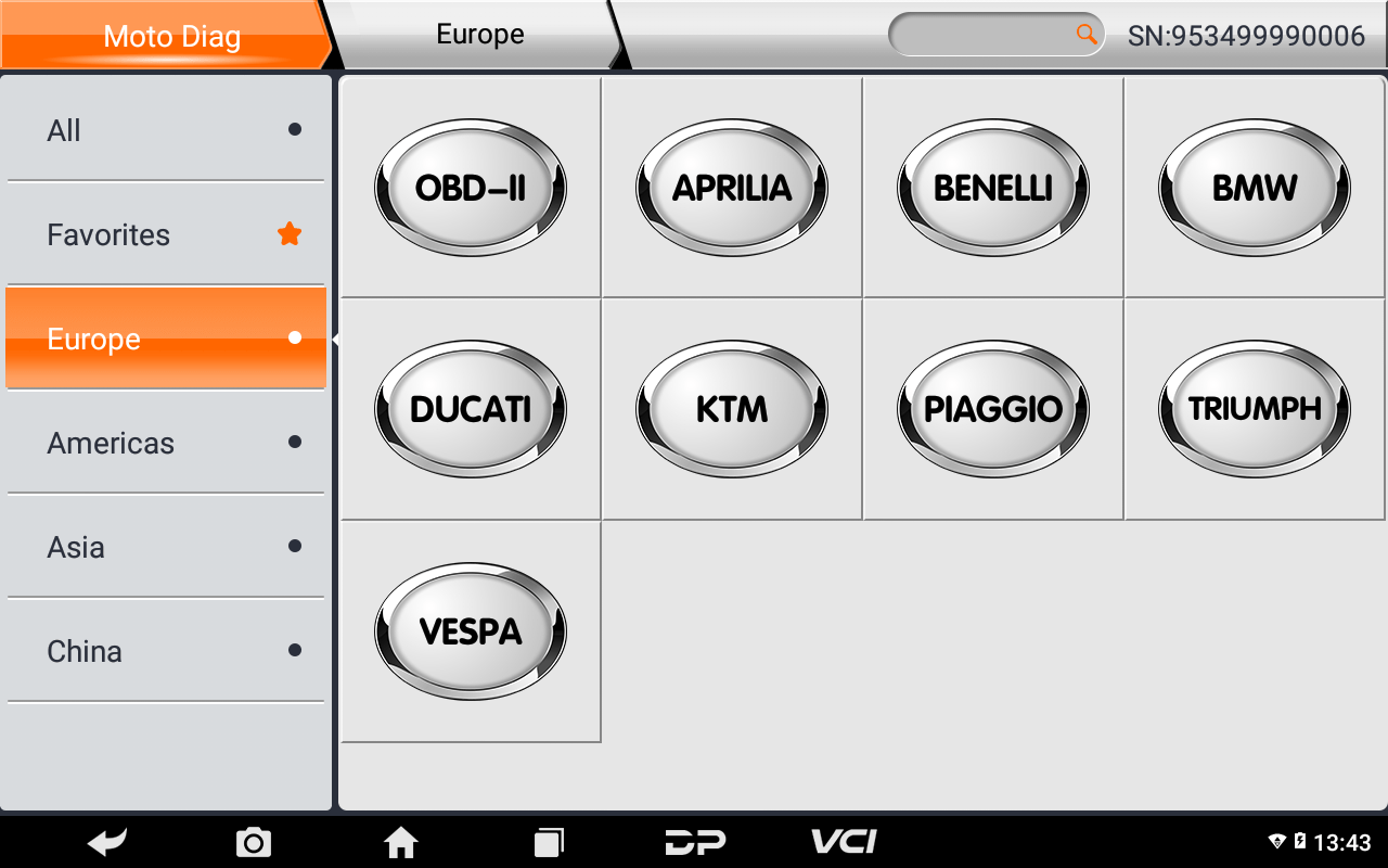 Europe:AJP,Aprilia,Benelli,BMW,Brixton Motorcycles,Derbi,Ducati,Fbmondial,Gasgas,Gilera,Goes,Husaberg,KSR Moto,KTM,Lambretta,Macbor,Malaguti,MBK,MH,Minsk,Moto Guzzi,MV Agusta,Peugeot,Piaggio,Qooder,Quadro,Sherco,Stels,Triumph,Verve Moto,Vespa