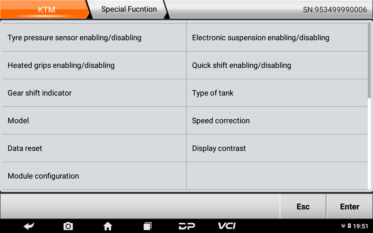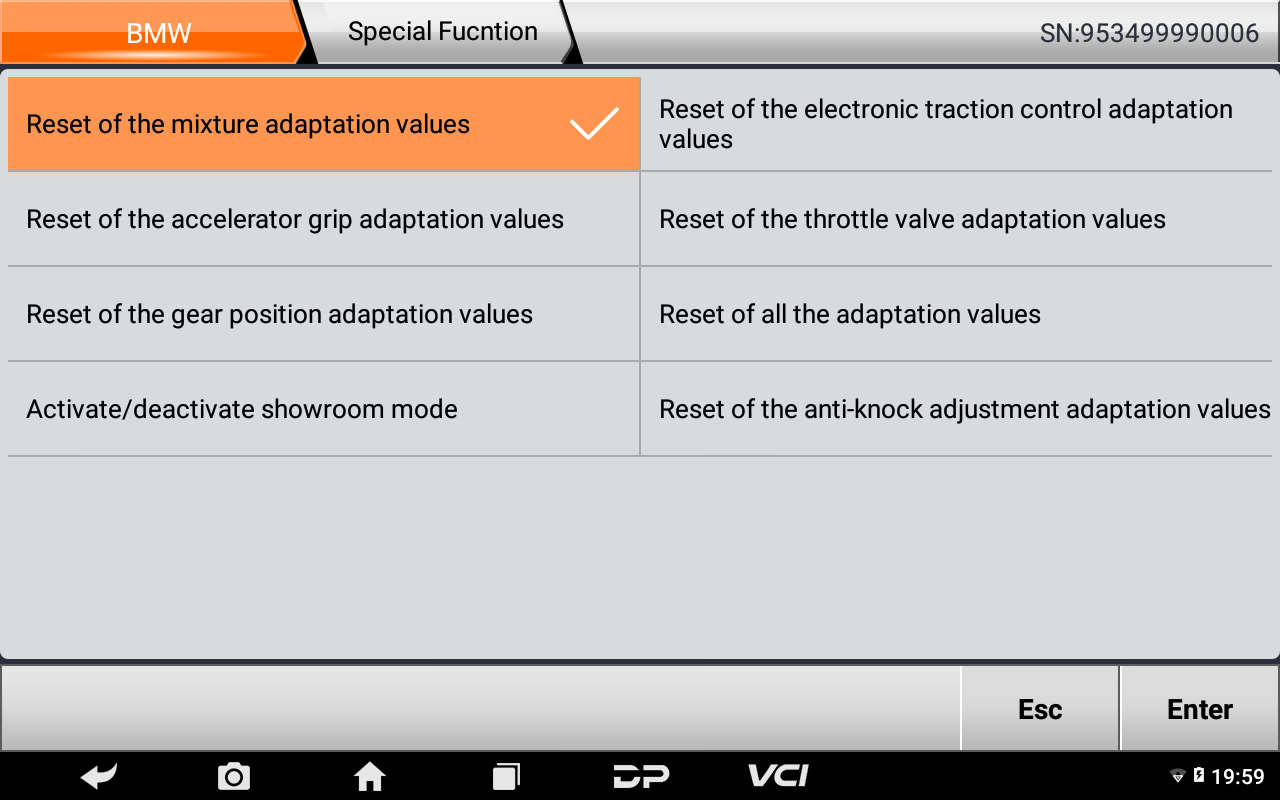 •Αυτόματη σάρωση, αυτόματη αναγνώριση VIN, προγραμματισμός και κωδικοποίηση μονάδας ελέγχου, ρύθμιση ECU, κωδικοποίηση οργάνου, σύστημα παρακολούθησης πίεσης ελαστικών, επαναφορά φωτός συντήρησης, ρύθμιση CO, ρύθμιση ταχύτητας ρελαντί, επαναφορά τιμών A / F, ρύθμιση μονάδας ελέγχου ABS, λειτουργία EOL , επαναφορά μνήμης μετάδοσης, εκκαθάριση μνήμης υπολογιστή κ.λπ.